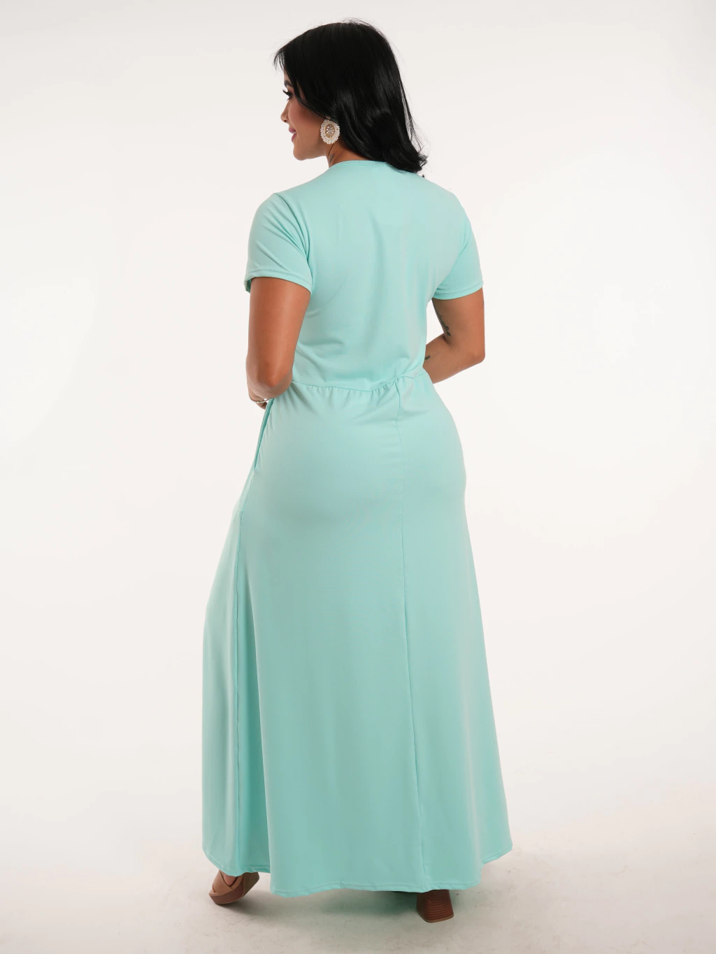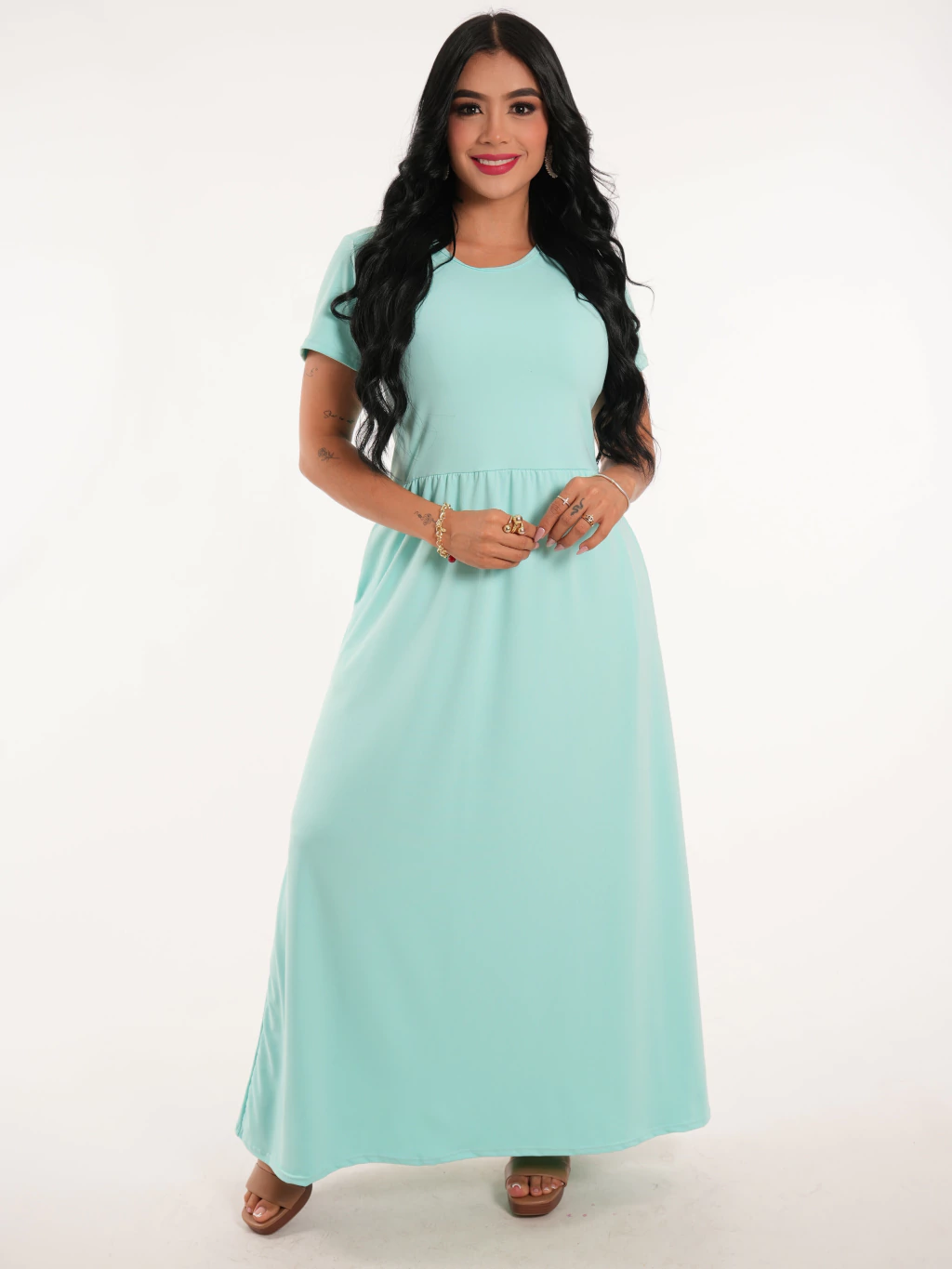 VESTIDO LARGO CON MANGA CORTA FONDO ENTERO